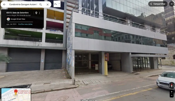 Box de garagem em edifício garagem no centro de Porto Alegre Perto do Mercado Público, da Praça da Alfândega, Prefeitura, Casa de CUltura Mario Quintana, Cais do Porto e de vários escritórios e prédios públicos. Atende a um grande público de pessoas. Aberta 24h, 7 dias por semana. Garagem com elevador e banheiro. Cond. Ed. Garagem Automática Sete de Setembro Rua Sete de Setembro 656 - Bairro Centro, Porto Alegre/RS.